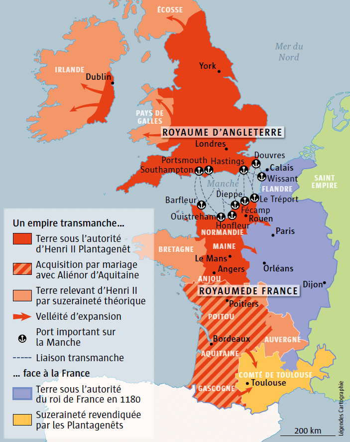 Les Plantagenêt, Geoffroi V, comte d’Anjou (le premier à porter ce surnom), son fils et successeur Henri, seigneur de Domfront puis bientôt duc de Normandie et roi d’Angleterre, son épouse, la célèbre Aliénor d’Aquitaine, leurs enfants et successeurs Richard Coeur-de-Lion puis Jean-sans-Terre se sont intéressés à Domfront. Ils y ont séjourné à plusieurs reprises. Dans une première partie, J-Ph Cormier nous explique leurs rapports avec Domfront et récapitule les séjours attestés ou probables d’Henri II (et de son épouse Aliénor d’Aquitaine) jusqu’à sa mort en 1189.